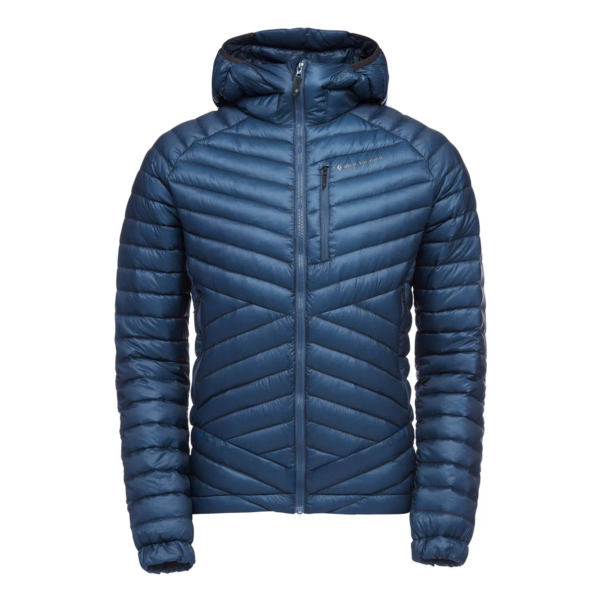 An ultralight down layering piece for chilly fall belays, breezy ridgelines, and fast-paced expeditions, the Black Diamond Approach Down Hoody packs down to nothing and deploys in an instant for dependable, alpine-worthy warmth. The Approach Hoody’s ultralight nylon ripstop shell features Green Theme International’s revolutionary Breathable Water Protection Technology – an environmentally-friendly PFC-free DWR that’s superior in performance and substantially more durable than other DWR solutions. Inside, premium 800-fill RDS-certified Allied HyperDRY™ goose down insulation offers high-lofting, incredibly packable warmth that resists inclement weather. When it’s time to move, the Approach stuffs into its hand pocket and secures to your harness with a carabiner clip-in loop.