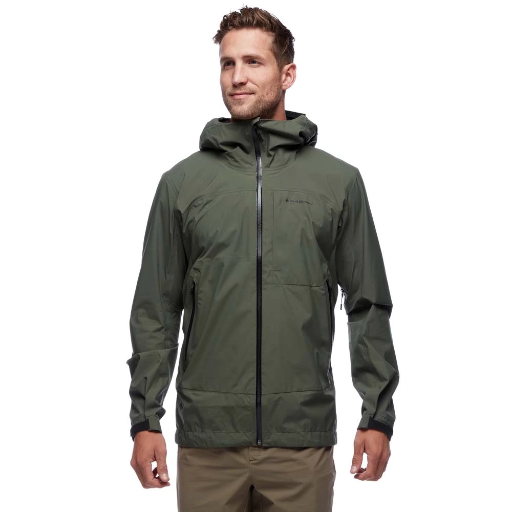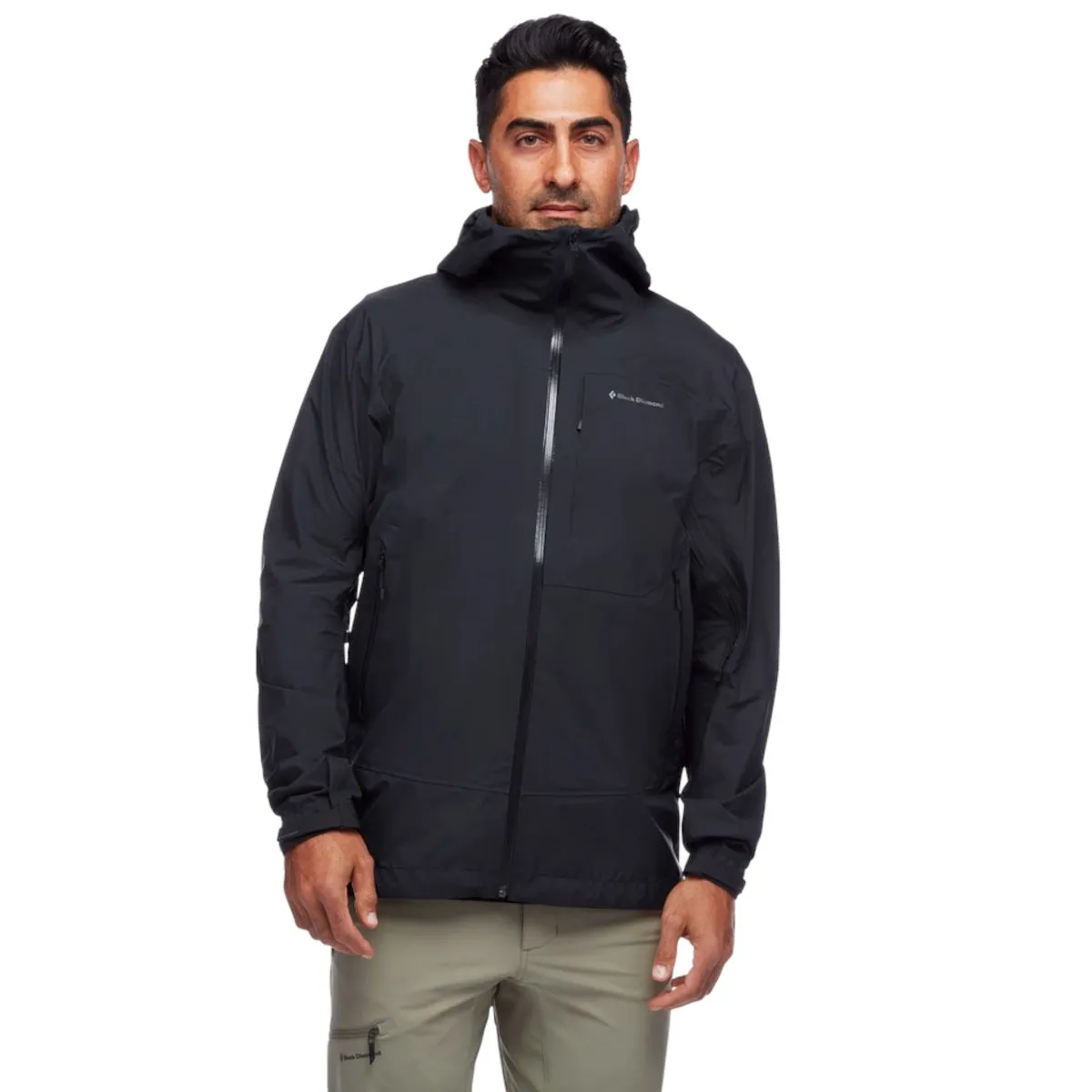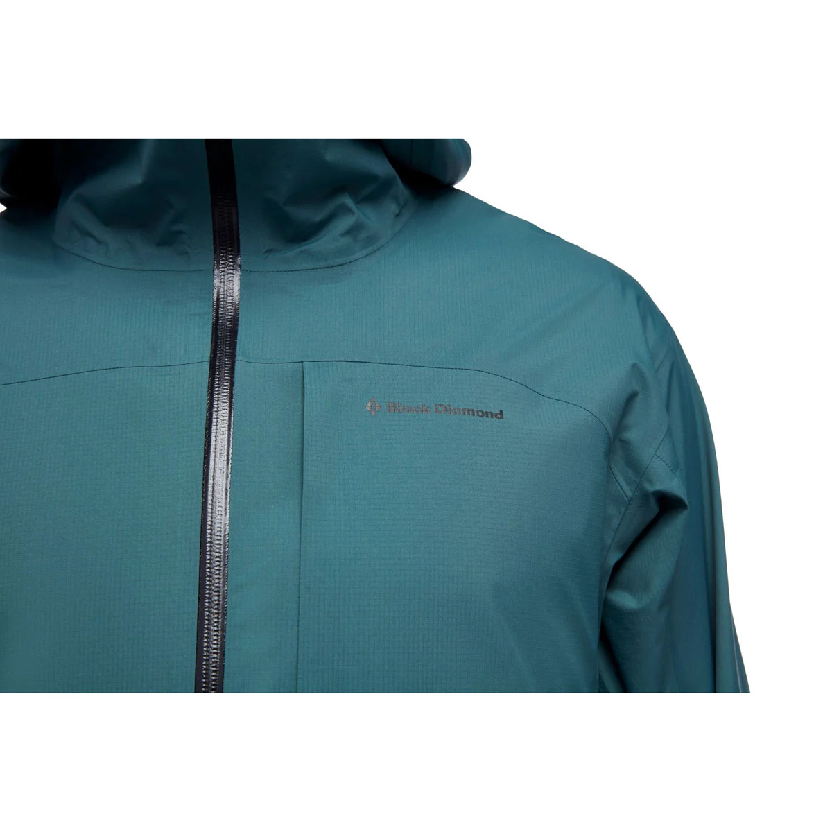 Black Diamond’s premium alpine 3-layer shell, the HighLine Shell combines BD’s dry laminated waterproof/breathable solution and Green Theme Technology’s revolutionary Breathable Water Protection – an all-new environmentally friendly PFC-free DWR that is superior in performance and durability to any other DWR solution – with lightweight, packable stretch to create the ultimate high-output inclement weather shell.