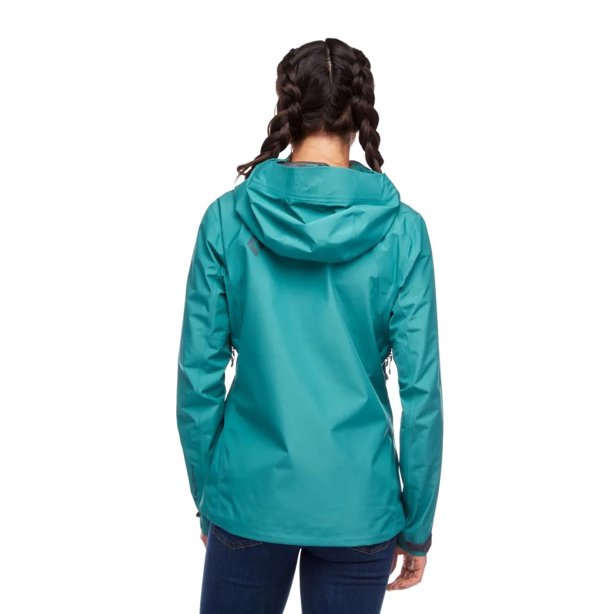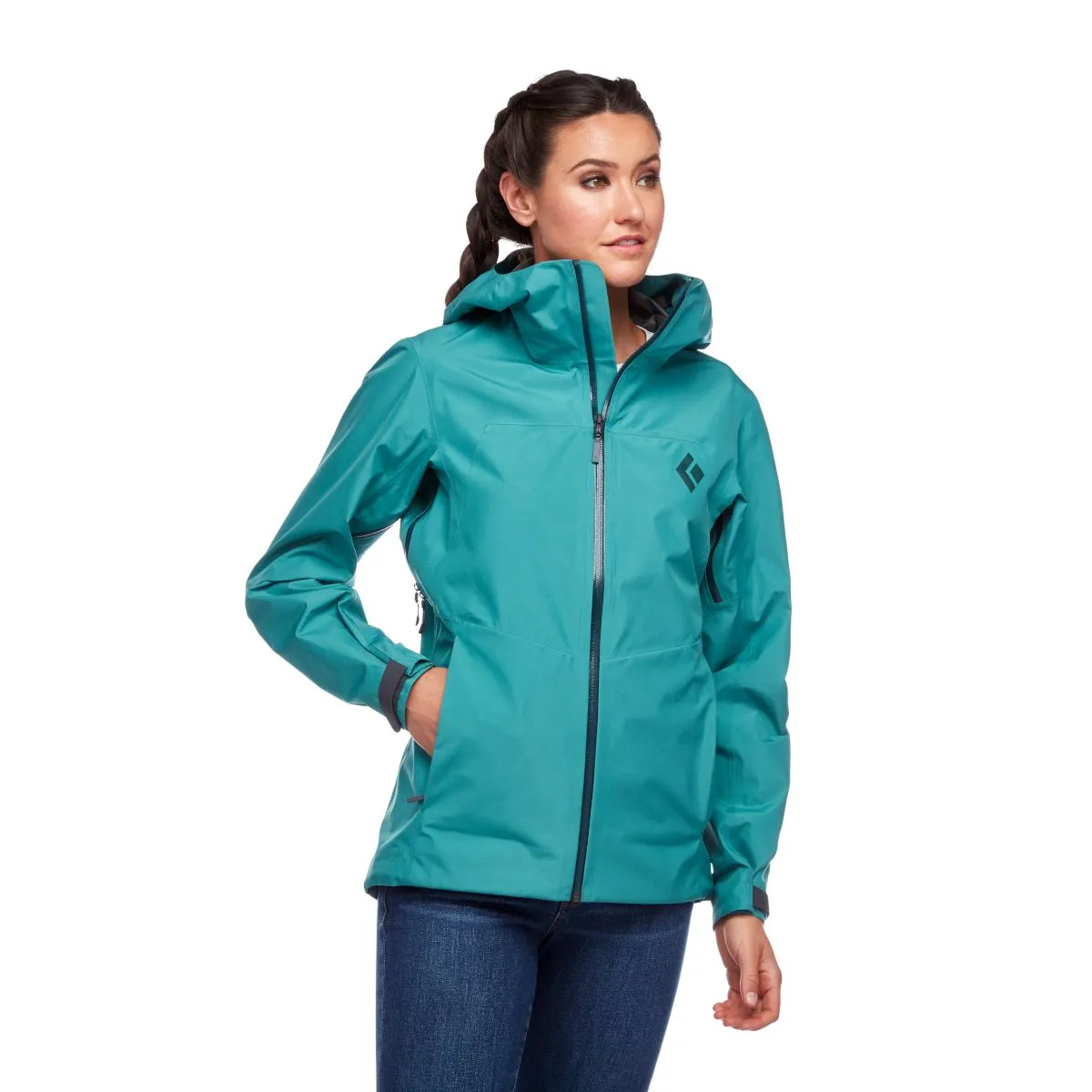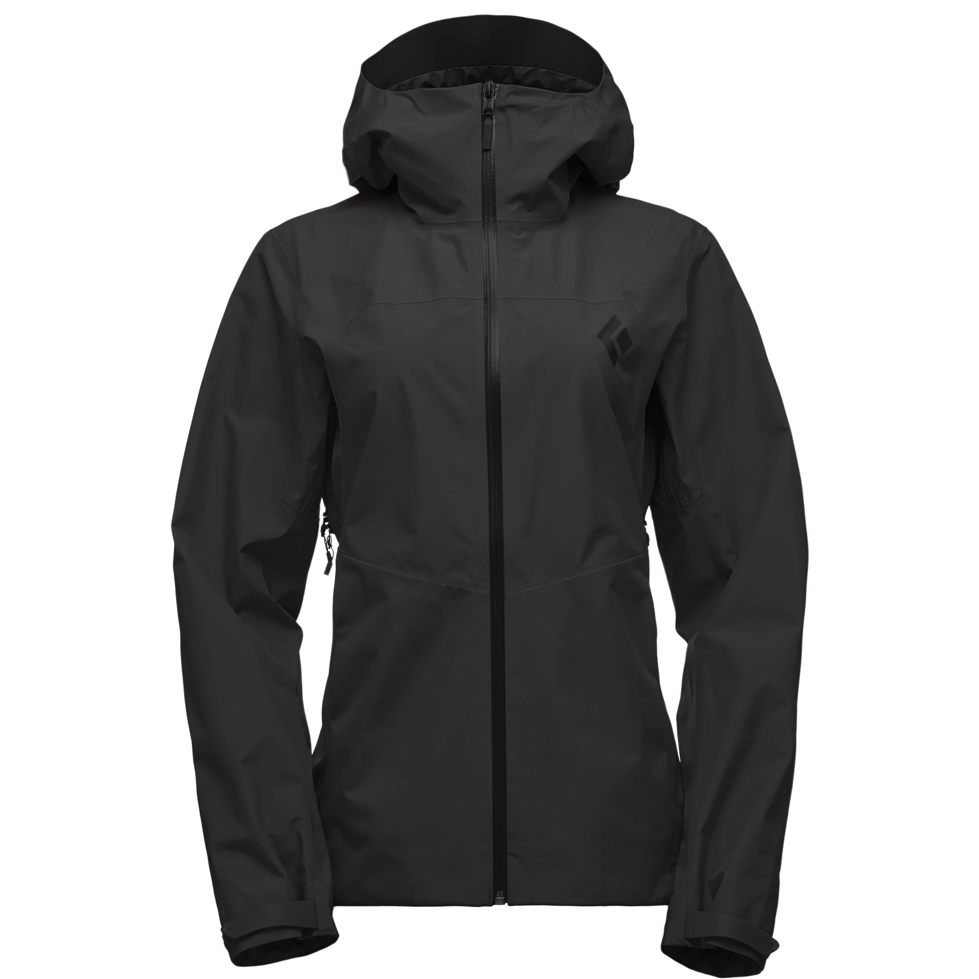 The Liquid Point Shell from Black Diamond is a lightweight waterproof-breathable shell jacket made with GORE-TEX® Paclite® for weather protection. It provides the unmatched weather protection you expect from GORE-TEX in a simple, versatile package ideal for emergency protection and ultralight missions, while featuring zippered hand pockets for storing small essentials and cold hands. The adjustable hood slides cleanly over a climbing helmet, and two-way armpit zip vents allow for quick temperature regulation during stormy high-output days. The drawcord hem and custom-molded cuff tabs seal out intrusive moisture and cold wind when conditions get foul.