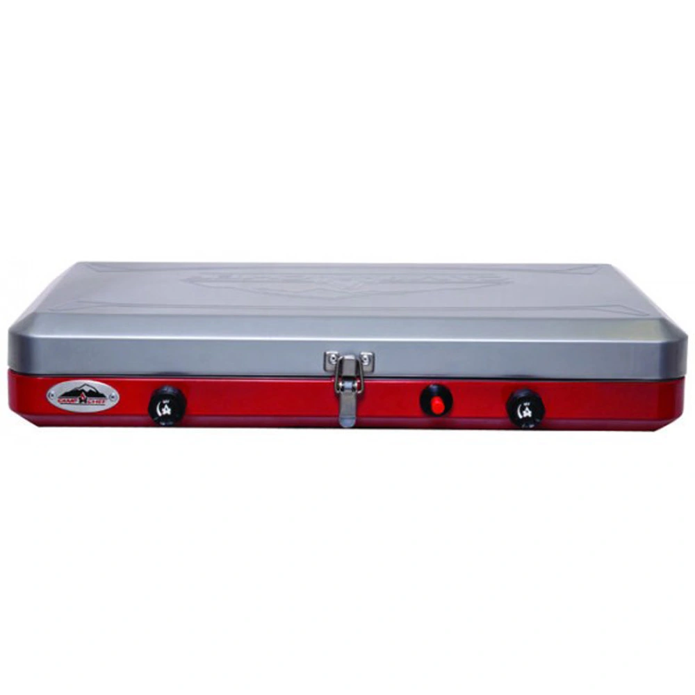 Don’t be fooled by its size, the Camp Chef Everest 2 Burner Stove packs a lot of power under the hood. Two high-pressure 20,000 BTU burners pump out all the heat you’ll need to feed a host of hungry campers. A matchless ignition system fires up the Everest quickly and easily. The nickel-coated steel cooking grate is strong and built to hold your pots, griddles, and skillets, and a locking lid and handle allows the stove to transport easily. The Everest’s light weight and compact size means you can take it with you on all of your adventures, from rafting trips to car camping.