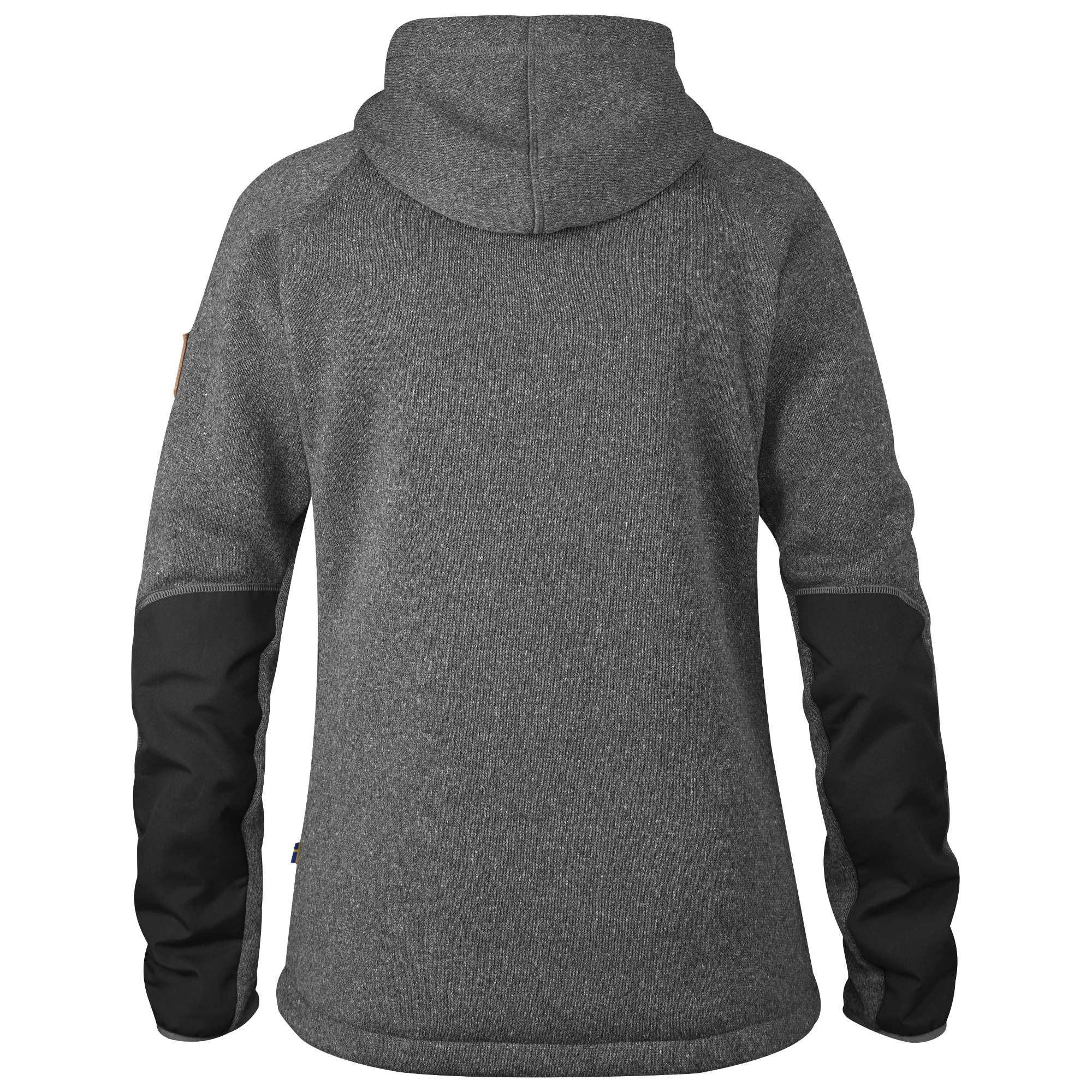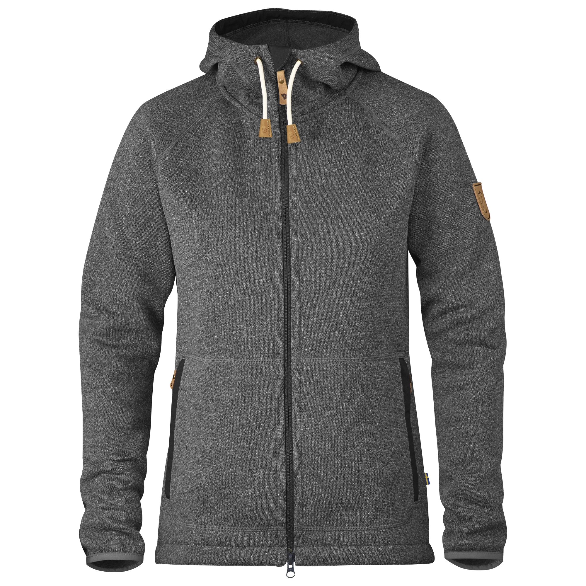 Warm and cosy fleece jacket with a knitted exterior and a soft brushed inside. Perfect as an insulating mid layer under a shell jacket on autumn or winter adventures, and just as comfortable for long afternoons with a good book in front of the fire. It has a fixed hood with a drawcord adjustment and the zipper at the front has a protective flap in G-1000 original that protects the chin. The elbows, hem, pockets and inside of the edge of the hood also have G-1000 for extra durability. Two spacious pockets with zippers. Elastic binding at the sleeve cuffs and drawcord adjustment at the hem. The fleece and mesh lining in the pockets are made from recycled polyester and produced using an environmentally friendly process that both spins and dyes the fibres at the same time. This leads to much lower levels of water and energy consumption compared to traditional dyeing techniques.