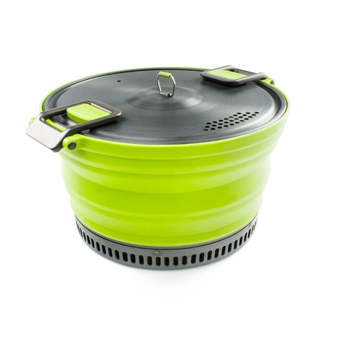 Includes 3 L Collapsible Pot, Folding Handles, Strainer Lid