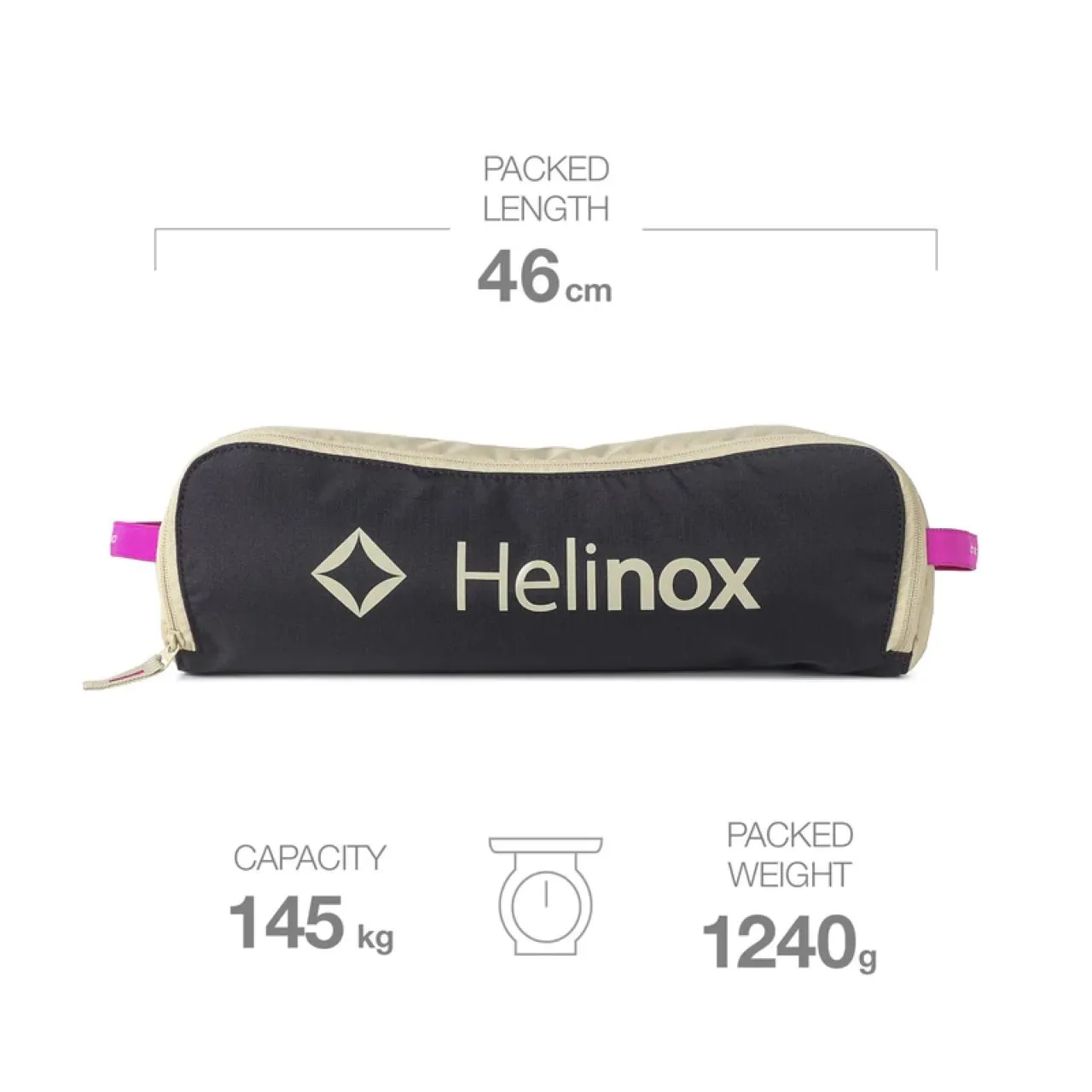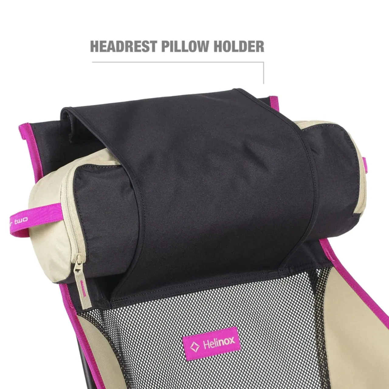 Delivering the optimal balance of packability and comfort, the Helinox Chair Two easily travels from weekend camping trips to sunny days at a city park. Tall, it supports your back, neck, and shoulders so you can really sit back, settle in, and relax. The large headrest wrap means you can make a pillow from anything soft that is close to hand. Side pockets to keep smartphone, snacks, sunblock within reach.