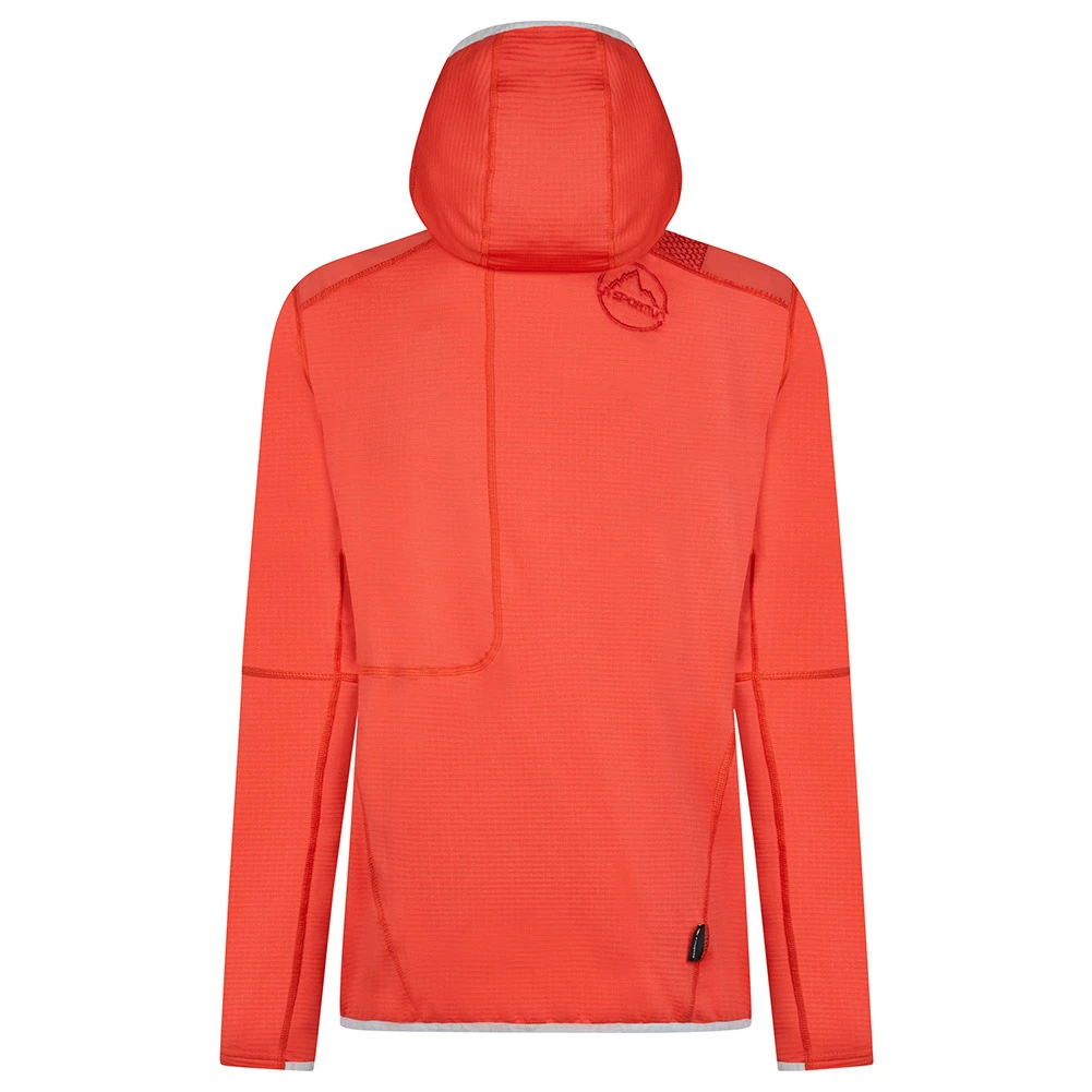 The La Sportiva women’s Granite Hoody is a stretchy and versatile second layer designed for the transitional spring and fall seasons. The feature rich hoody offers two zippered hand warmer pockets, a nicely articulated hood, reinforced shoulder panels to hold up to the wear of pack straps and anti-odor POLYGIENE treatment.