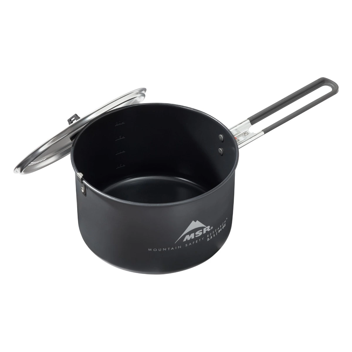 The MSR Ceramic 2.5 liter pot makes it easier than ever to cook like you do at home while on the trail. Its Fusion® ceramic nonstick coating offers worry-free cooking—not only is this premium coating extra-durable, it’s also safe at high heat and PFTE- and PFOA-free. Great for soups, sauces and other sticky fare, this easy-clean pot adds capacity for 2-4 people and larger dinner duties. Light and tough, it lets you enjoy the whole backcountry experience, especially dinner time.