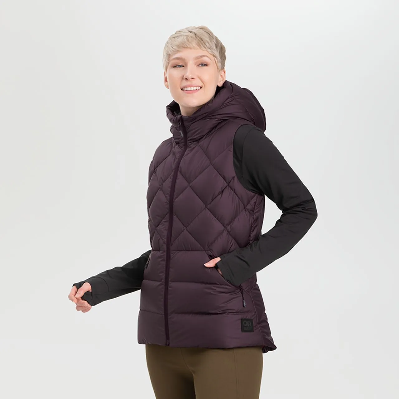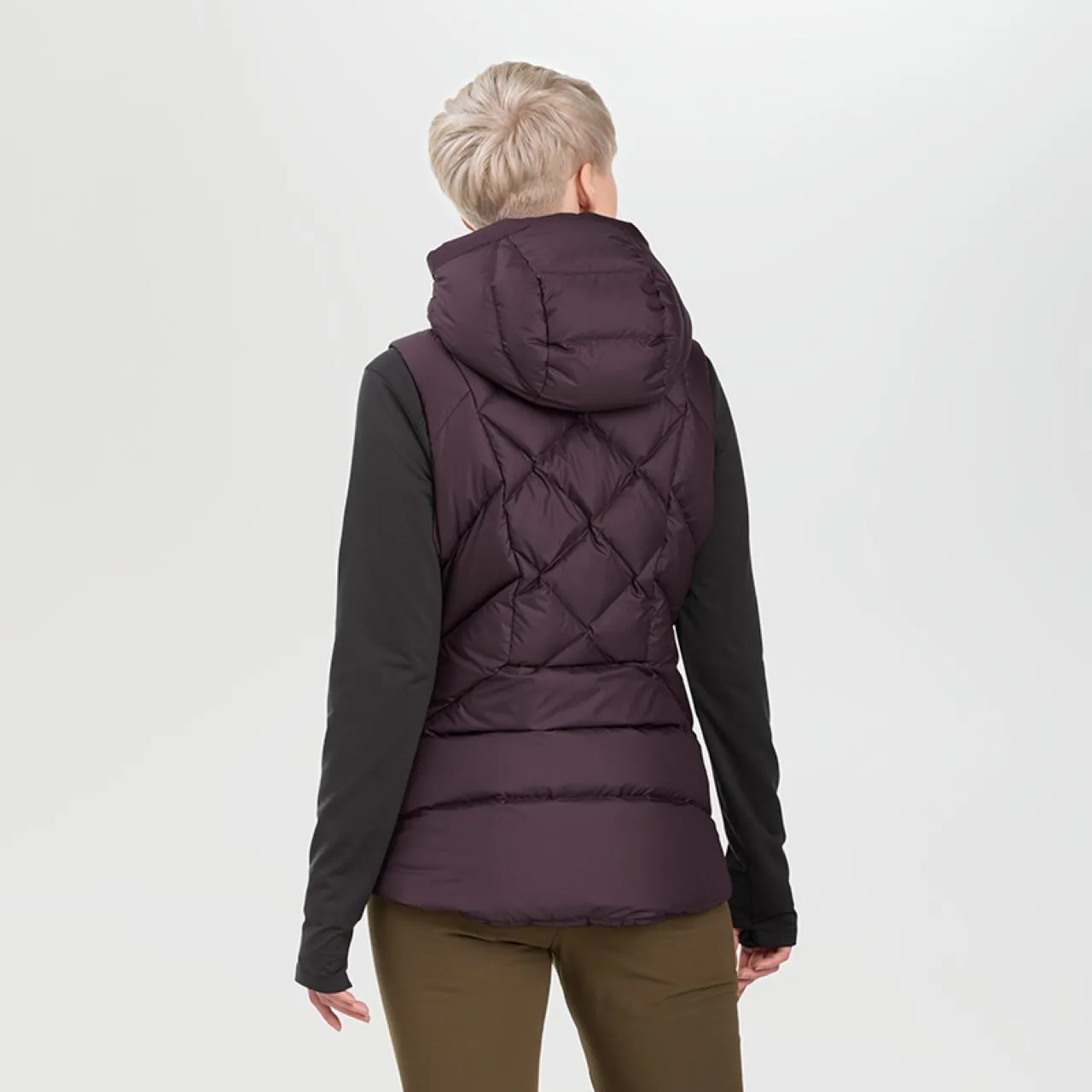 First, it’s packed with 700+ fill power of responsibly sourced down insulation for the very best warmth in cold environments. Next, it uses a 53% recycled ripstop exterior fabric that blocks wind, resists rain and snow, and stays light to save on weight. Finally, it’s got 85% recycled Outdoor Research exclusive VerticalX™ ECO insulation on the tops of shoulders, preventing heat from escaping in key areas.