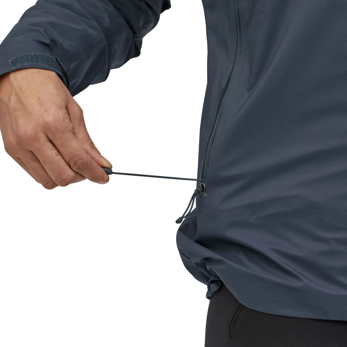 An ultralight, 3-layer H2No® Performance Standard shell with a 100% recycled nylon ripstop face fabric keeps precip at bay, while a tricot backer provides next-to-skin comfort. A single-pull adjustable hood provides protection and is alpine-helmet compatible. Center-front zip is coated and waterproof with an internal storm flap. External left-chest pocket plus two handwarmer pockets are watertight, and the jacket self-stuffs into chest pocket. With low-profile cuffs with hook-and-loop closures, plus a dual-adjust drawcord hem to seal out weather. Fair Trade Certified™ sewn.