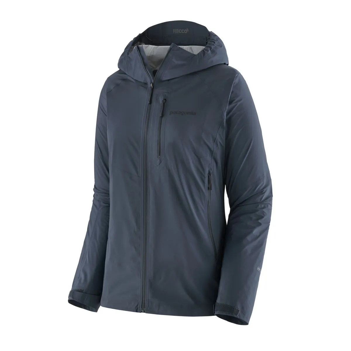 For moving fast and light through the mountains, the Patagonia women’s Storm10 Jacket is an ultralight 3-layer waterproof shell to keep in your pack and deploy when the weather turns.