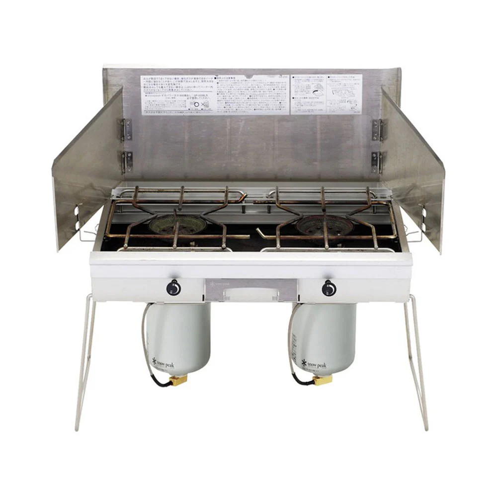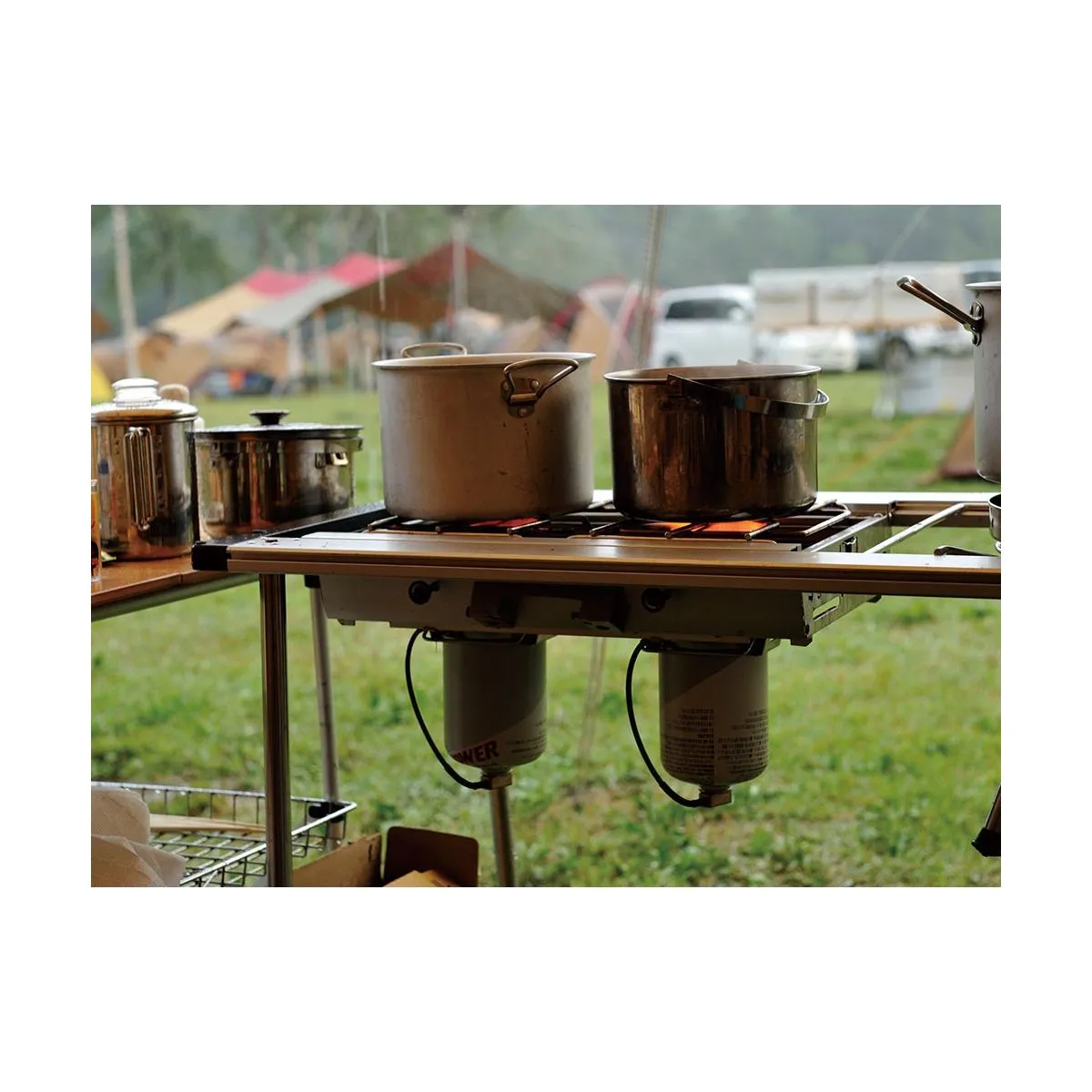 Snow Peak’s Double Burner LI Stove has the gas cartridges installed upside down for better performance in cold weather. The gas cartridge does not cool down due to the heat of vaporization and has a revolutionary mechanism that ensures stable gas supply to the end. Both silver can and gold can gas cartridges can be used, making it easy to install and ignite. It is easy to adjust the heat level and the stove supports a wide range of pot sizes.