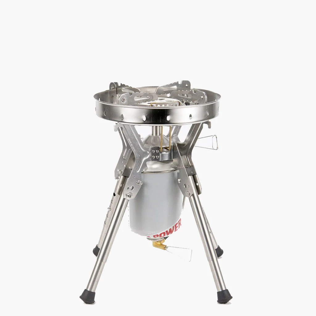 The Snow Peak Gigapower LI’s large output of a powerful flame allows for fast and thorough cooking while its adjustable legs make it easy to use on any terrain. Its large trivets allow for holding larger pots as well. This stove stores perfectly in its carrying case in any campsite and is designed to make attaching and detaching fuel easy. With an auto igniter, adjustable flame, and impeccable construction, this stove will be the envy of the campsite.