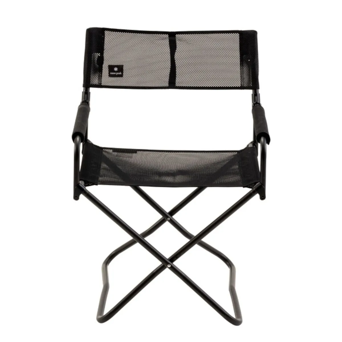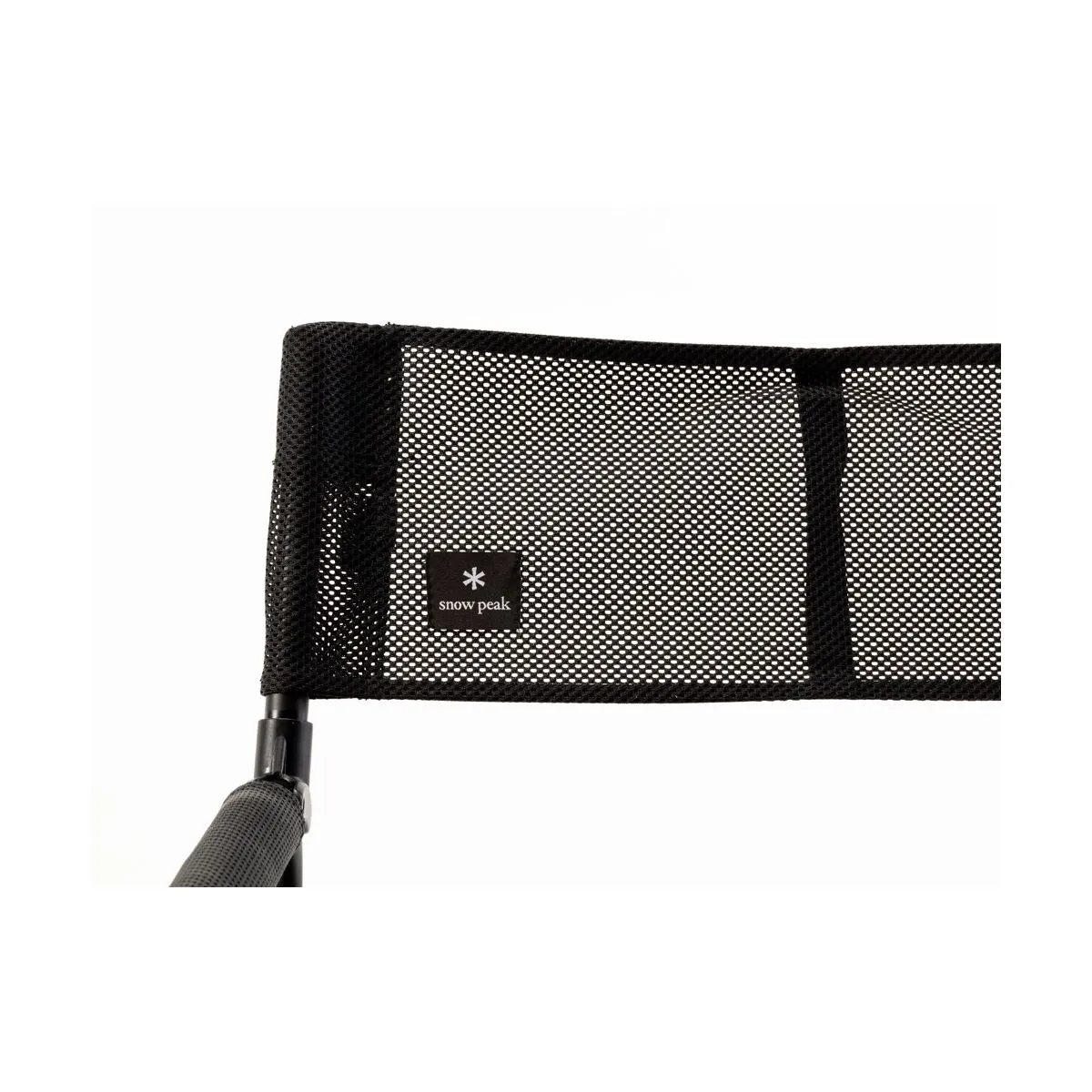 Snow Peak’s classic folding chair silhouette in lightweight mesh for hot days.
