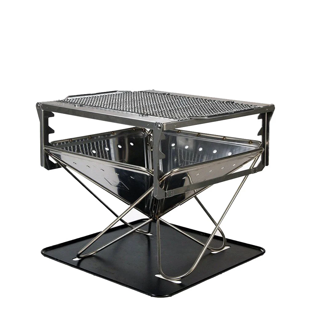 Snow Peak developed this fireplace to address the damage typical campfires do to the environment. By raising the fire off the ground and containing both charcoal and wood, the Pack & Carry Fireplace limits the amount of waste left behind at a campsite and keeps fires from negatively affecting the terrain.