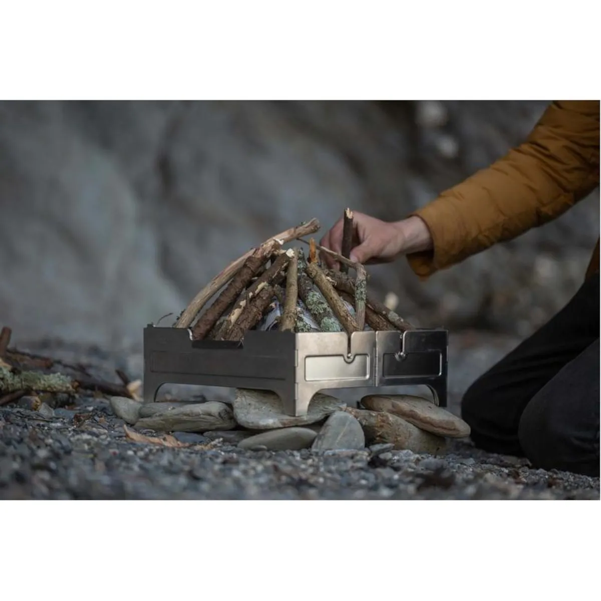 After use, the same component that allowed for efficient airflow acts as a scoop for the ashes, creating the first disposal-conscious fire containment base. Wolf and Grizzly specifically designed this with a minimal trace mentality.