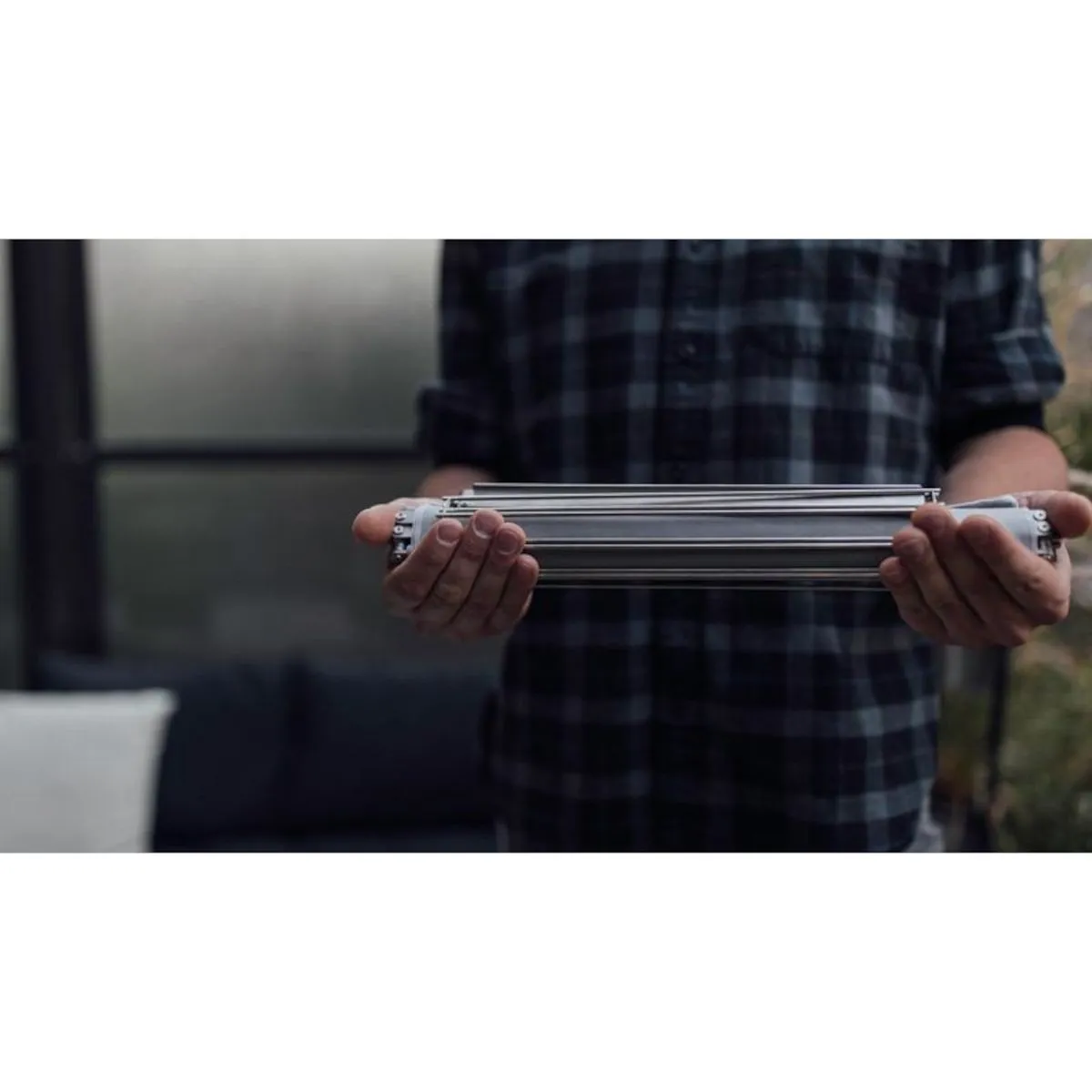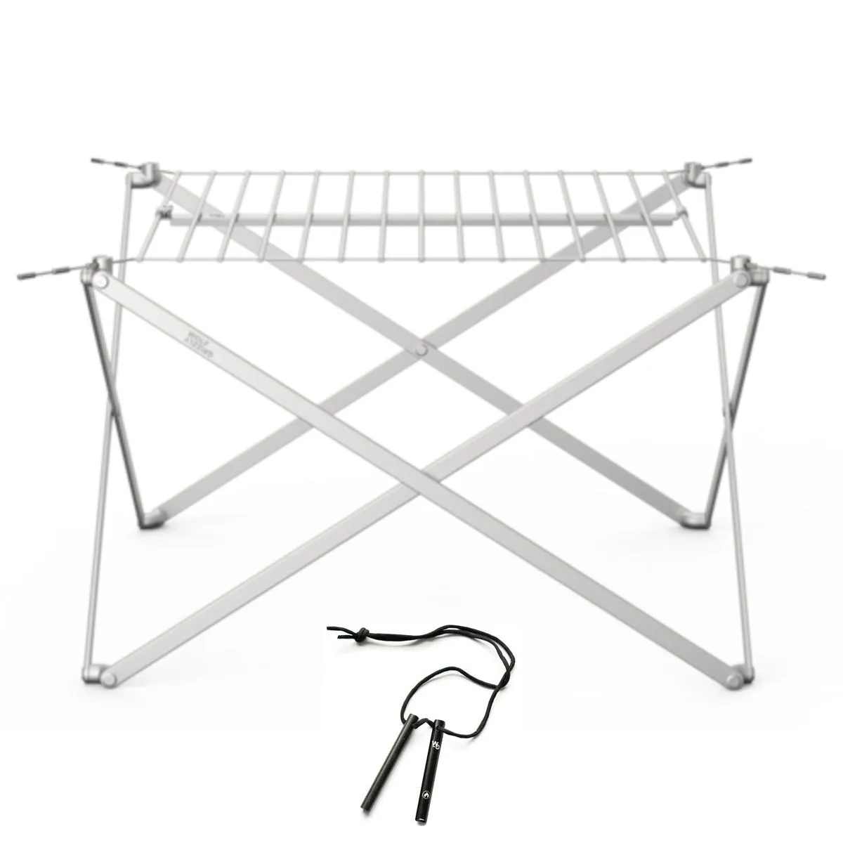 Every component of the Grill — from the frame legs to the bolts and screws — is made out of 304 stainless steel, ensuring that you don’t need to worry about the low melting point of aluminum or the low stability temperatures of non-stick coatings. The frame, rods, and technical stainless steel aircraft cable makes for a sturdy, corrosion-resistant experience that won’t have you wondering whether or not it can support you on your journey.